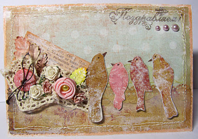 Это моя первая шебби-попытка. Вот такие получились птички. Вдохновление от Vintage Cafe Card Challenge - Задание №6 - Крылатое.